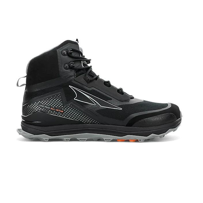Pack up and head out with Lone Peak ALL-WTHR Mid. This ground-stomper is thru-hike-ready with an eVentâ„¢ weather-resistant bootie construction, a grippy DuraTreadâ„¢ outsole, and a soft yet responsive Altra EGOâ„¢ midsole. From day hikes to thru-hikes and everything in between, the Lone Peak ALL-WTHR Mid is ready to romp.