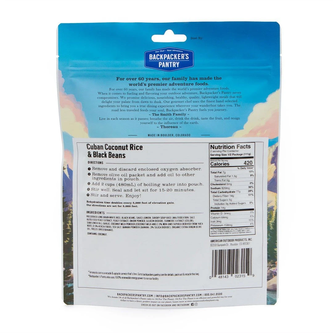 Bring a bit of the tropics along on your next outdoor adventure. This fragrant Caribbean classic puts a delicious Cuban twist on a sweet and savory blend of coconut milk, black beans, and bananas. Itβs also high in protein, vegan, and gluten free. Like our other nutritious dehydrated meals, this entree is a snap to make. Boiling water, some stirring, and hydration time is all it takes.