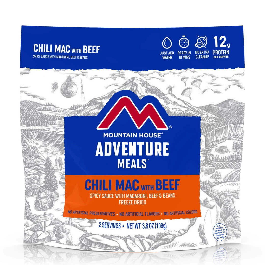 Made with pillowy macaroni noodles, savory precooked beef and yummy kidney beans in a tasty chili sauce, our freeze dried Chili Mac is a customer favorite from coast to coast.