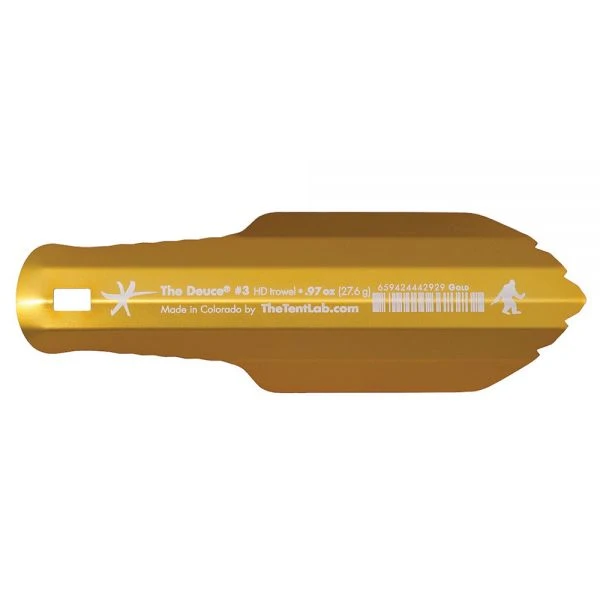 Weighing less than 2 tablespoons of water, .97oz. The Deuce #3 Heavy Duty Backcountry trowel by TheTentLab is light but tough. Aerospace-grade aluminum lets you dig and pry with ease, even on rocky ground. A full-sized, beast of a trowel for users who regularly encounter difficult ground. Thicker material makes the #3 twice as strong as our #2 and more comfortable in the hand.
