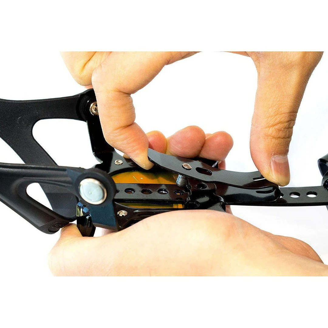 - X-shaped polycarbonate harness reduces pressure points found in many conventional crampons.