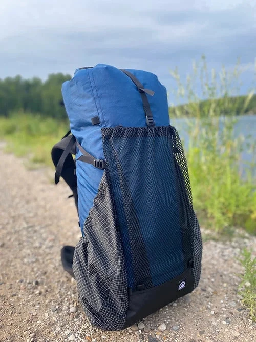 The pack comes stock with a lycra pad sleeve on the back panel and a foam sit pad which can be used as a seat while taking breaks. Optionally you can also use a folded 1/8″ foam sleeping pad in the back panel to replace the sit pad. The lycra mesh used for the back panel is an antimicrobial mesh which is anti-odor and also wicks sweat away from your back.